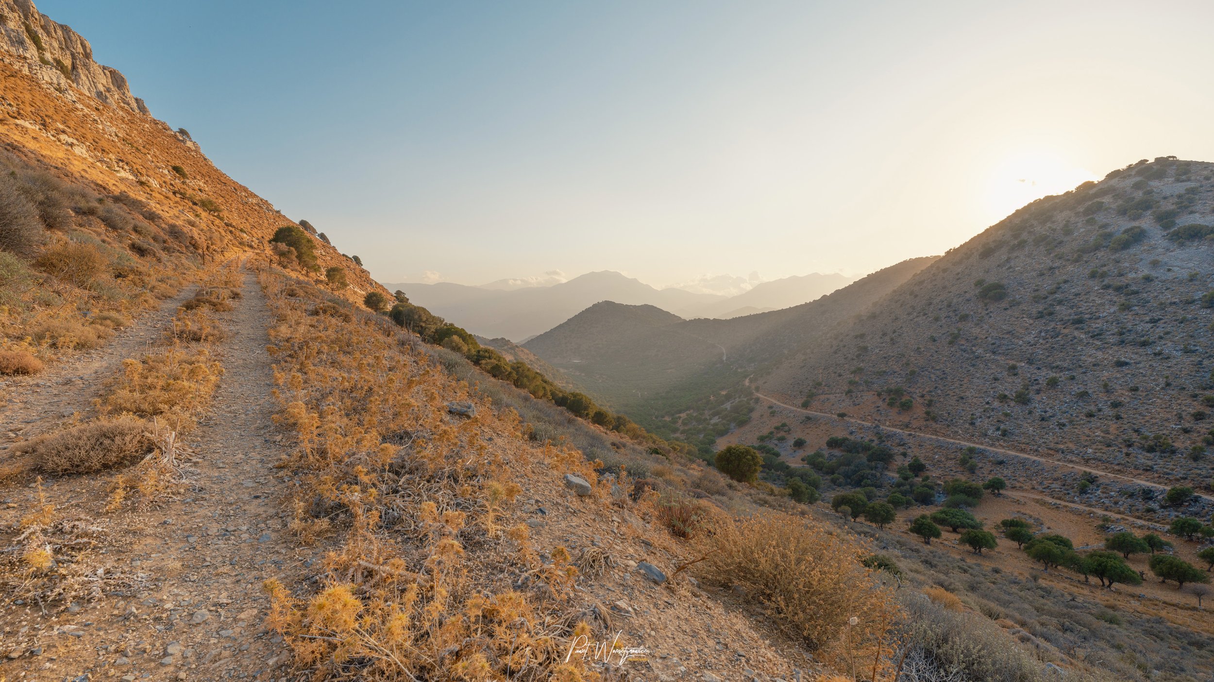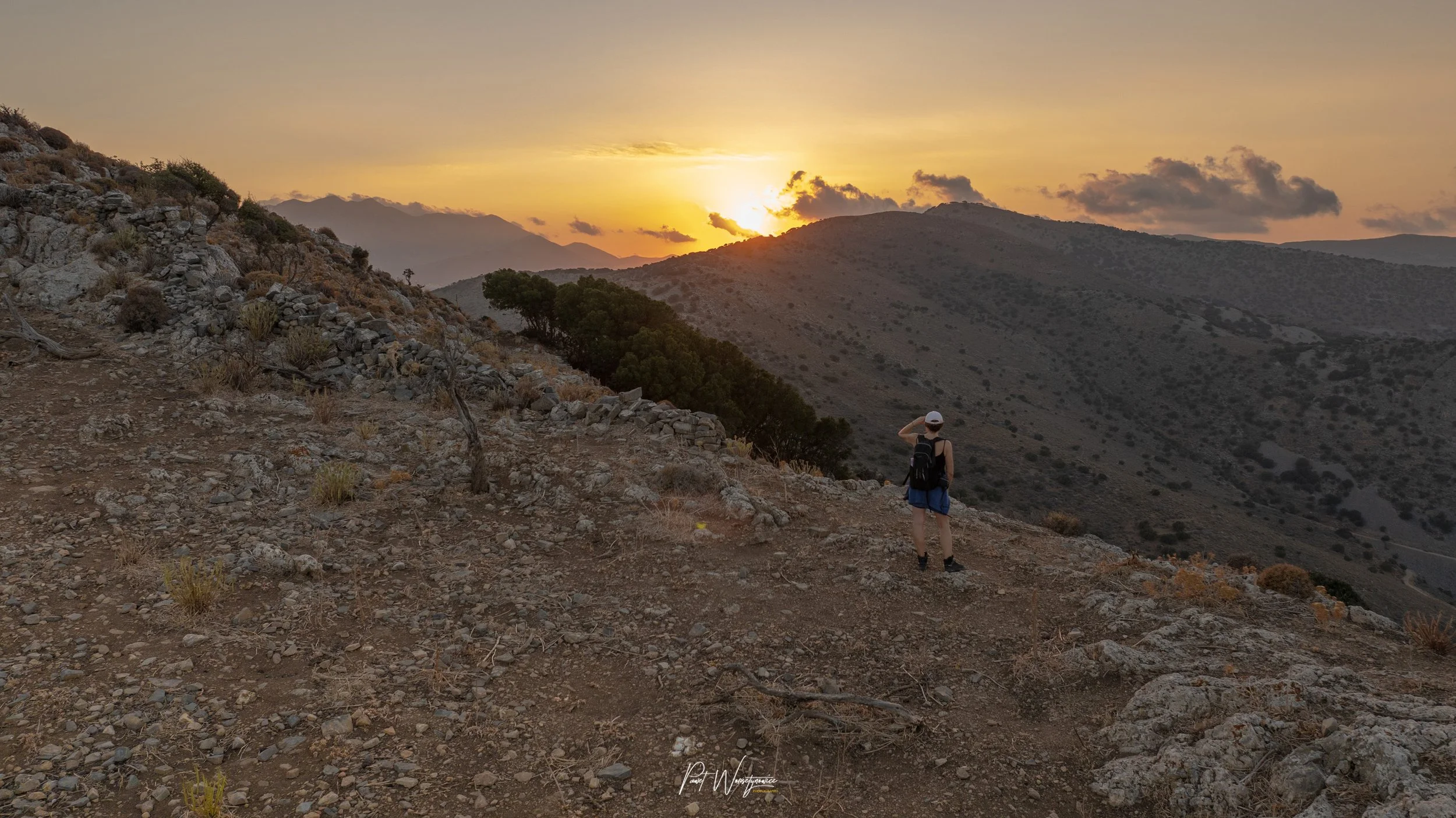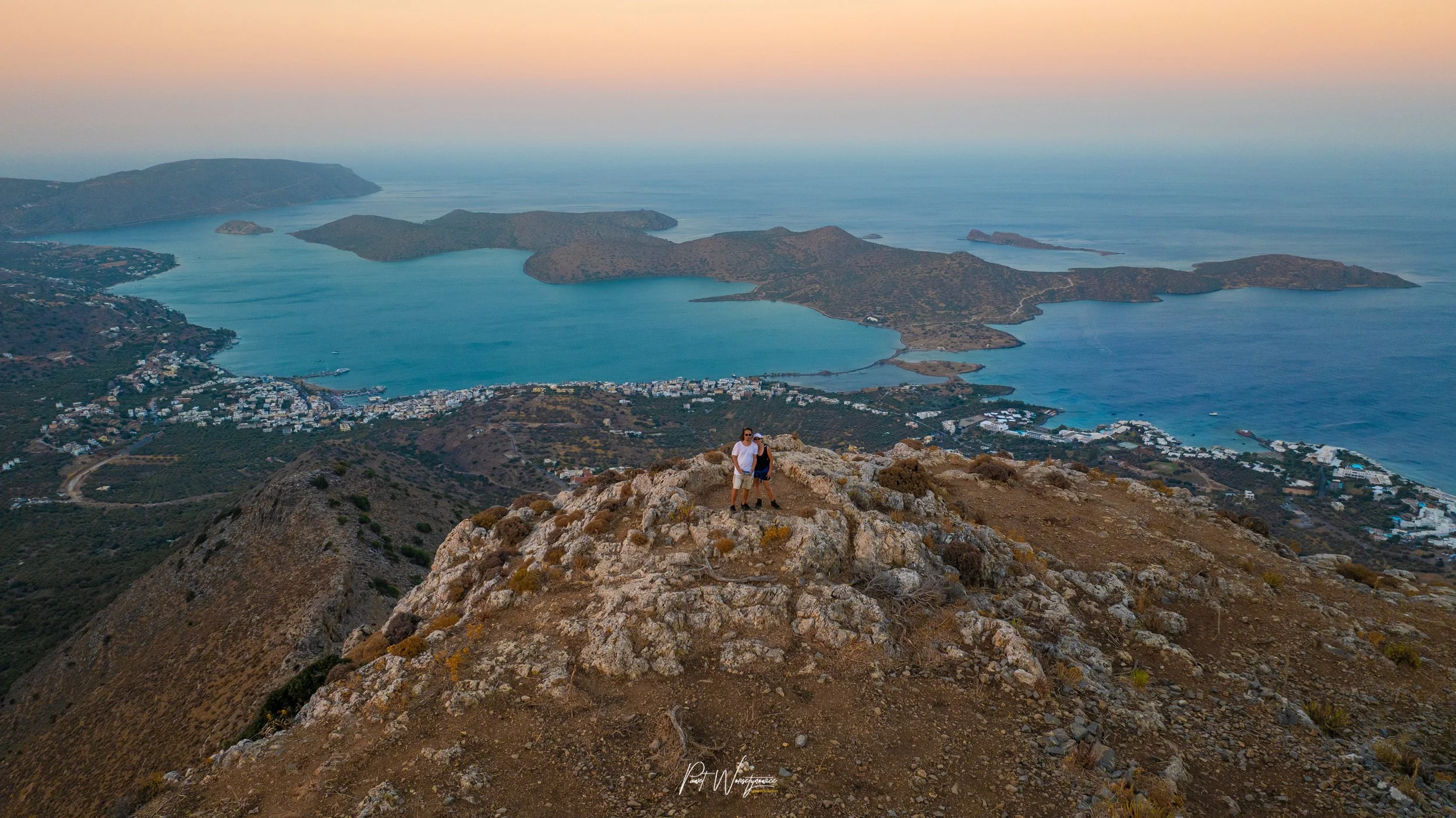 Wschodni szczyt oferuje najpiękniejszą panoramę zatoki Mirabello. Ścieżka jest dobrze oznakowana (niebieski na białym tle), ale wymaga uwagi – ruchome kamienie i urwiska po wschodniej stronie nie pozwalają na beztroskie podejście. Warto mieć dobre buty trekkingowe i statyw do aparatu – światło o tej porze zmienia się błyskawicznie i pozwoli złapać kadry bez poruszenia, które układają się tutaj same w obiektywie.